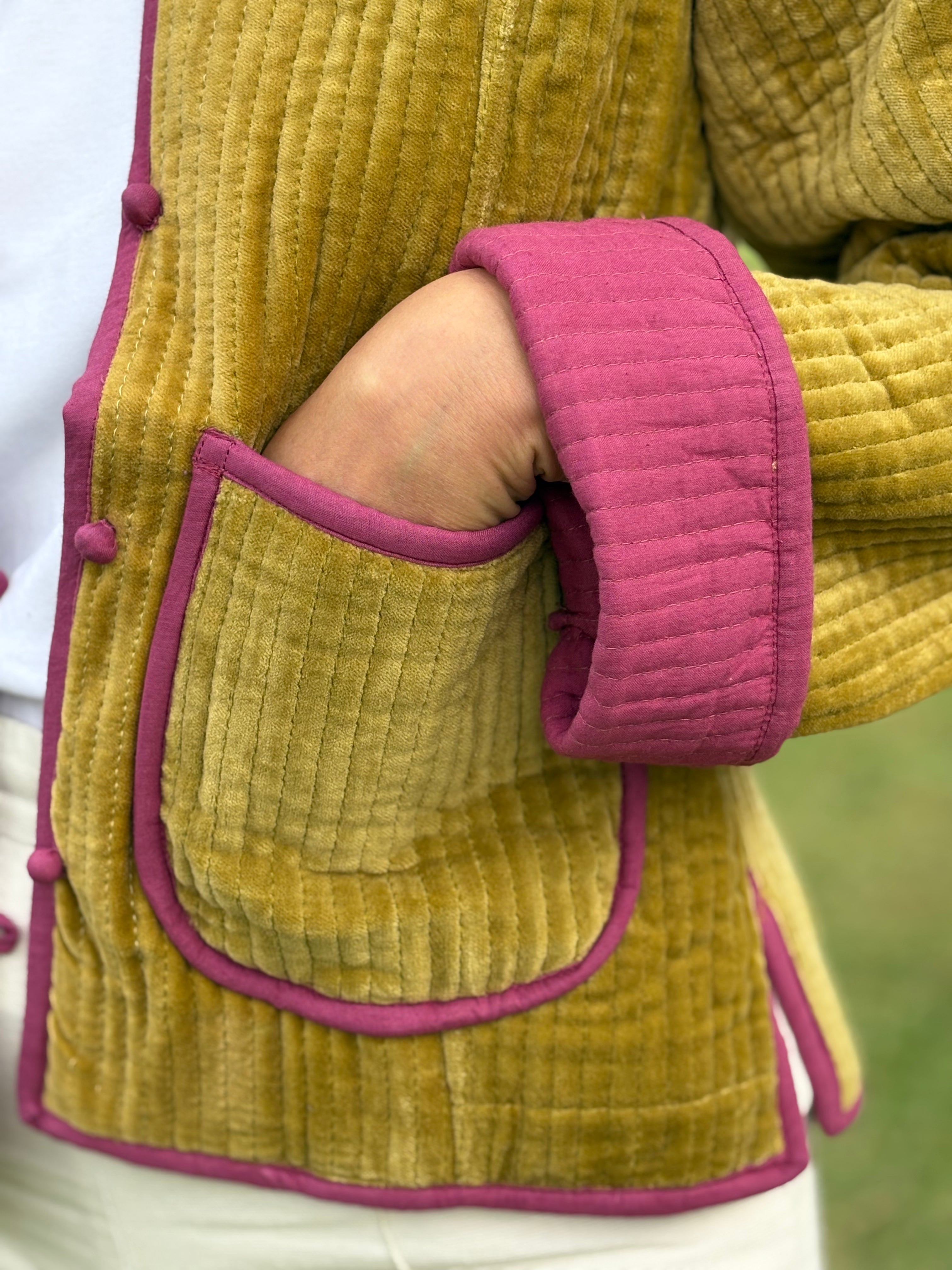 Handmade with a rich blend of velvet and cotton, this timeless jacket wraps you in softness and subtle sophistication. From its graceful lines to its enduring palette, every detail is designed to elevate the everyday.